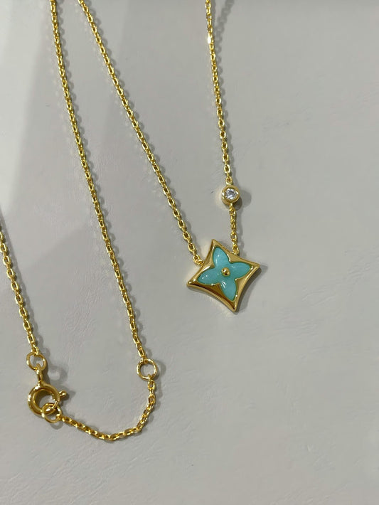 Regular price $26.00 USDRegular priceUnit price / perSale price $26.00 USDLouis Vuitton Color Blossom BB Star Pendant | Yellow Gold & Amazonite Flower Pendant | LV Colorful Gemstone Jewelry