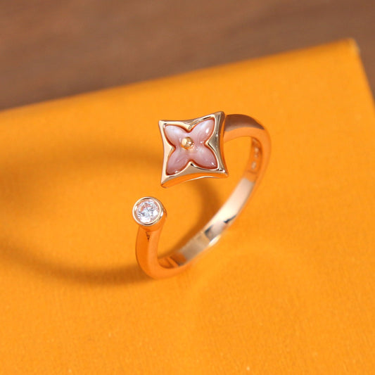Regular price $25.00 USDRegular priceUnit price / perSale price $25.00 USDLouis Vuitton Color Blossom Mini Star Ring | Pink Gold & White Mother-of-Pearl Ring | Delicate Floral Star Ring