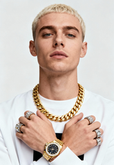 The gleaming gold Cuban chain, thick and weighty, represents the power and attitude of hip-hop streetwear. Whether on stage or in daily life, it can show your unique presence.