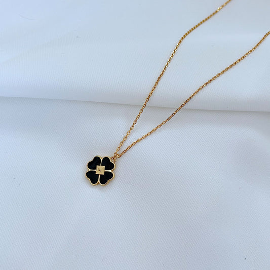 Kate Spade Clover Necklace | Gold Tone and Black Enamel Four Leaf Clover Pendant