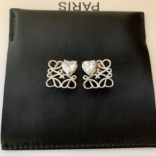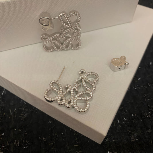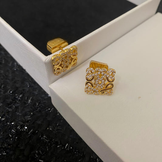 Regular price $34.00 USDRegular priceUnit price / perSale price $34.00 USDLoewe-Style Pavé Anagram Stud Earrings - Crystal Accented Gold Tone Luxury Earrings for Women