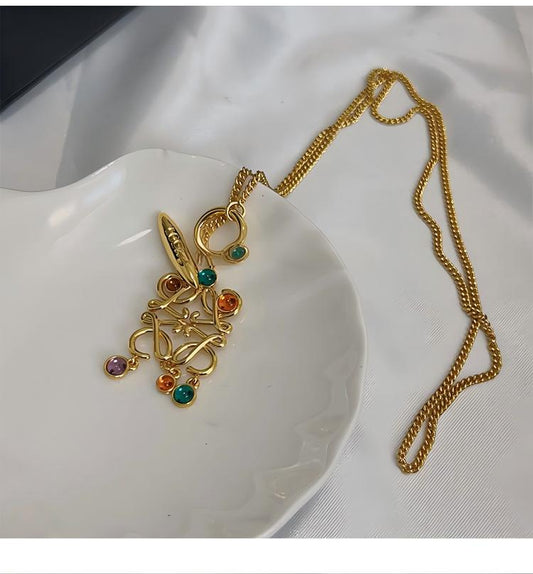 Regular price $38.00 USDRegular priceUnit price / perSale price $38.00 USDLoewe Anagram Multicolor Stone Necklace | Rainbow Logo Pendant Necklace