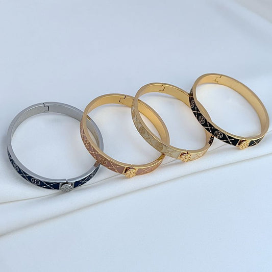 Regular price $50.00 USDRegular priceUnit price / perSale price $50.00 USDTory Burch Miller Enamel Logo Hinge Bracelet | Gold Tone Enamel Bangle | Double T Hinge Bracelet