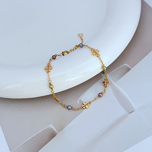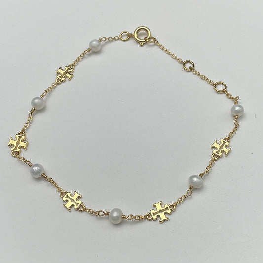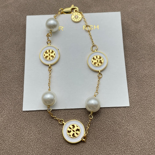 Regular price $30.60 USDRegular priceUnit price / perSale price $30.60 USDTory Burch TB Logo & Pearl Bracelet | Gold Pearl Bracelet | Double T Logo Pearl Bracelet
