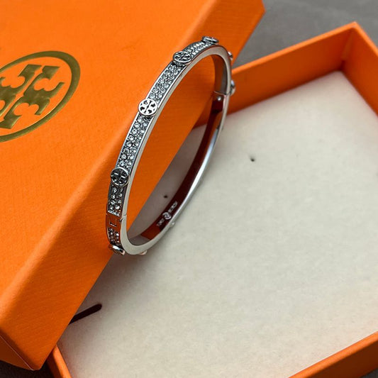 Regular price $37.80 USDRegular priceUnit price / perSale price $37.80 USDTory Burch Miller Stud Pave Hinge Bracelet | Gold Tone Crystal Bracelet | Sparkling Hinged Bangle