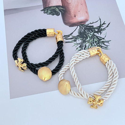 Regular price $30.80 USDRegular priceUnit price / perSale price $30.80 USDTory Burch Shell and Kira T Rope Bracelet | Rope Twist Shell Bracelet | Kira Chevron T Bracelet
