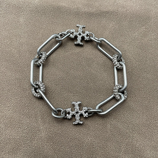 Regular price $40.00 USDRegular priceUnit price / perSale price $40.00 USDTory Burch Roxanne Pave Bracelet | Gold Tone Crystal Chain Bracelet | Double T Pave Bracelet