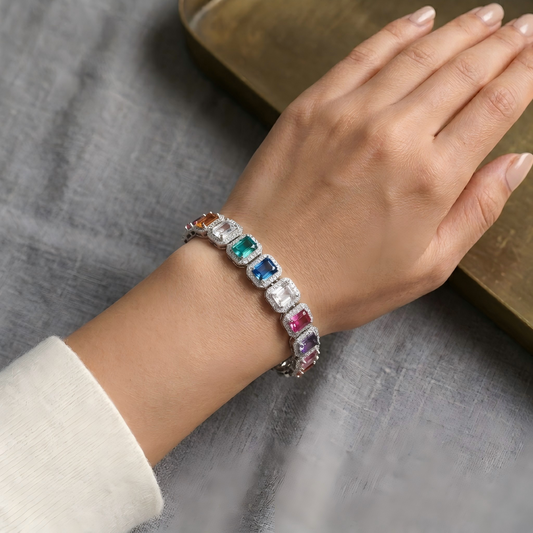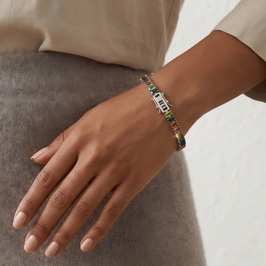 Regular price $142.00 USDRegular priceUnit price / perSale price $142.00 USDSterling Silver Rainbow Gemstone Tennis Bracelet