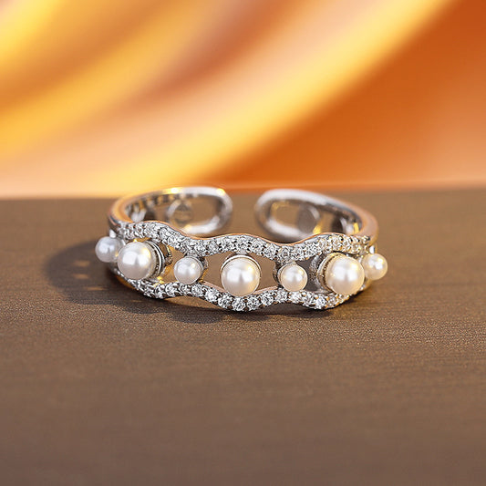 Regular price $30.00 USDRegular priceUnit price / perSale price $30.00 USDSterling Silver Wave Ring with Pearl & Cubic Zirconia