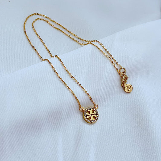 Regular price $50.00 USDRegular priceUnit price / perSale price $50.00 USDTory Burch Pave Necklace | 18K Gold Plated Brass Necklace | Crystal Pendant Necklace