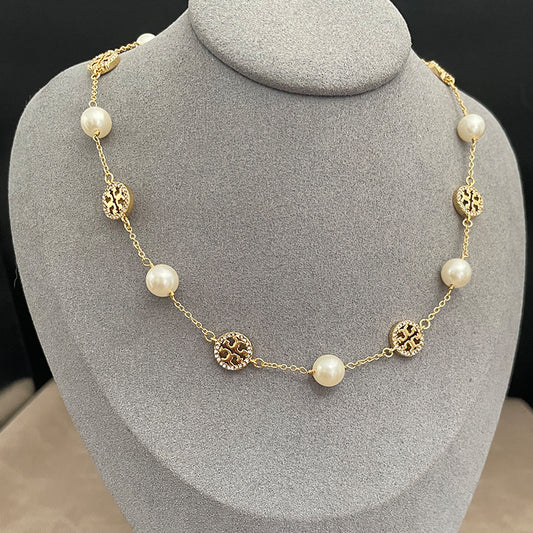 Regular price From $40.80 USDRegular priceUnit price / perSale price From $40.80 USDTory Burch Logo Pearl Necklace | Double T Pearl Pendant Necklace | Gold Tone Pearl Necklace