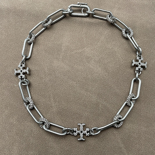 Regular price From $30.00 USDRegular priceUnit price / perSale price From $30.00 USDTory Burch Roxanne Short Chain Necklace | Silver Tone Logo Necklace | Double T Pendant Choker Necklace