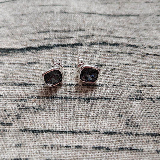 Regular price $42.00 USDRegular priceUnit price / perSale price $42.00 USDUNOde50 Stud Earrings with Grey Crystal | Silver Smoky Quartz Studs | Artistic Gemstone Earrings