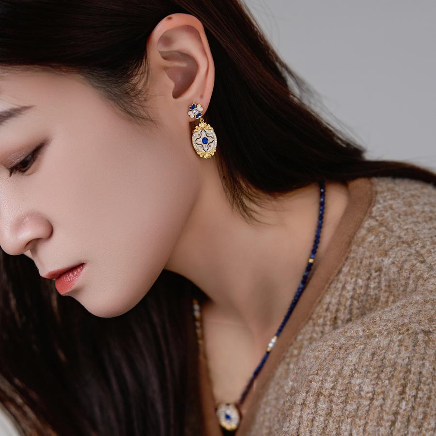 Inspired by timeless Parisian elegance, the “Époque Élégante” earrings combine soft enamel texture with sculptural metallic lines. A modern take on vintage glamour — graceful, distinctive, and full of quiet confidence.