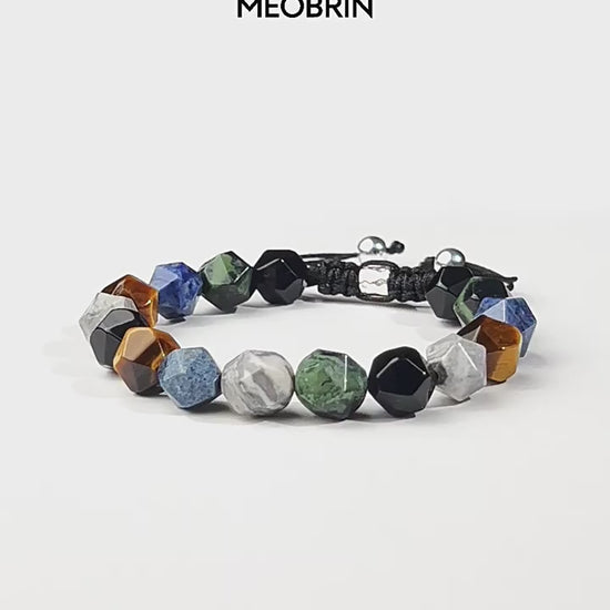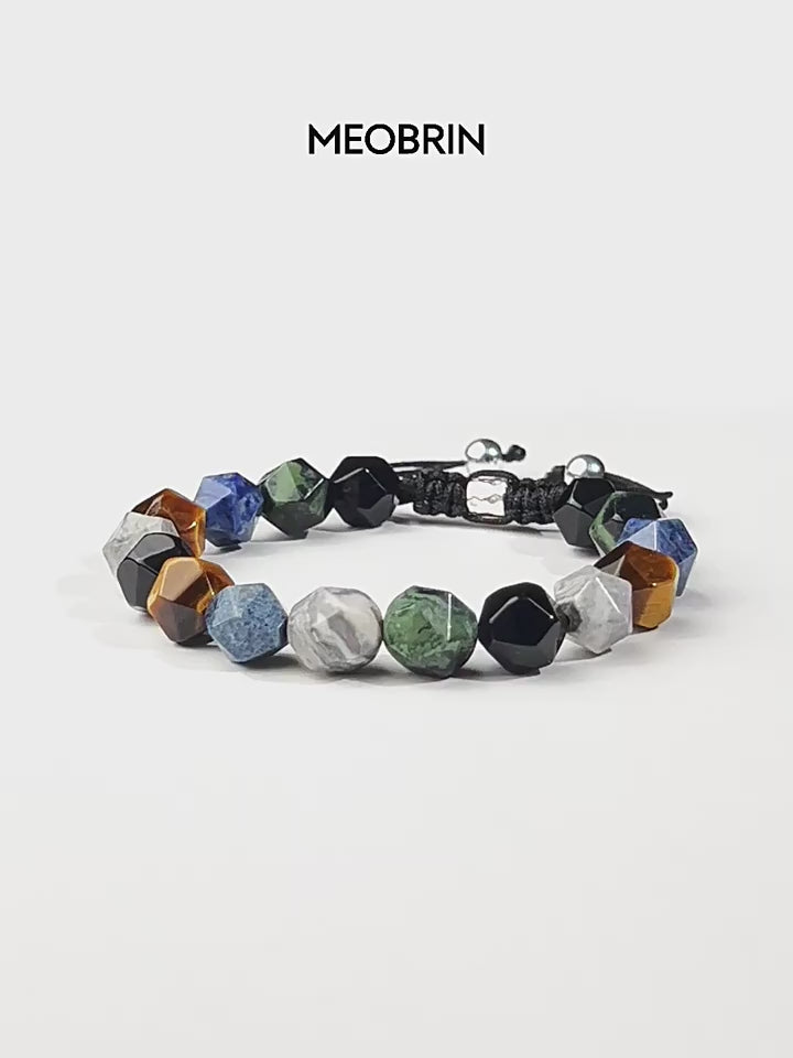 This bead bracelet is a tribute to nature's artistry, a seamless blend of Onyx, Tiger Eye, Dumortierite, and Bloodstone. It's a wearable connection to the elements, each bead a token of strength, wisdom, patience, and vitality. Designed with an adjustable drawstring, it offers a personalized touch of comfort, making it not just an accessory, but a part of your journey.