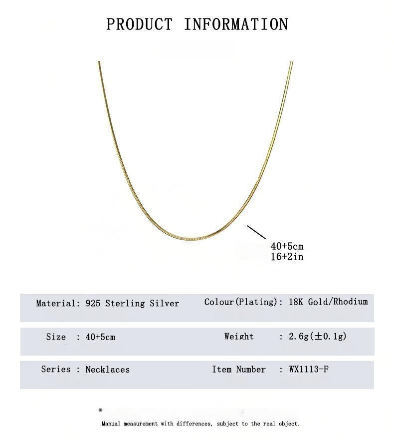 S925 Sterling Silver Snake ChainNecklace 0.8mm